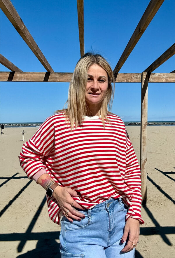 FELPINA DI COTONE LEGGERO TAGLIO OVETTO RIGATA