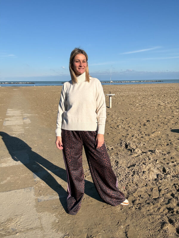 PANTALONE EFFETTO TUTA ANIMALIER E BANDE LATERALI