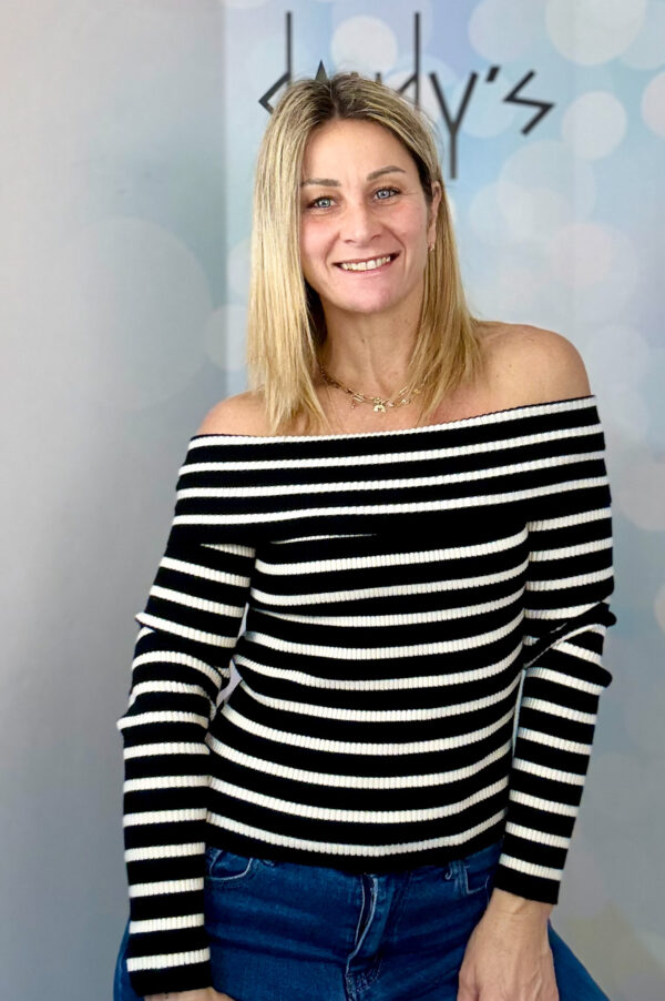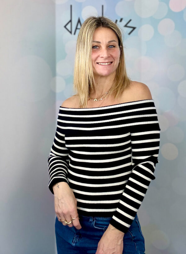 MAGLIONCINO SCOLLO BARDOT A COSTINE RIGATA