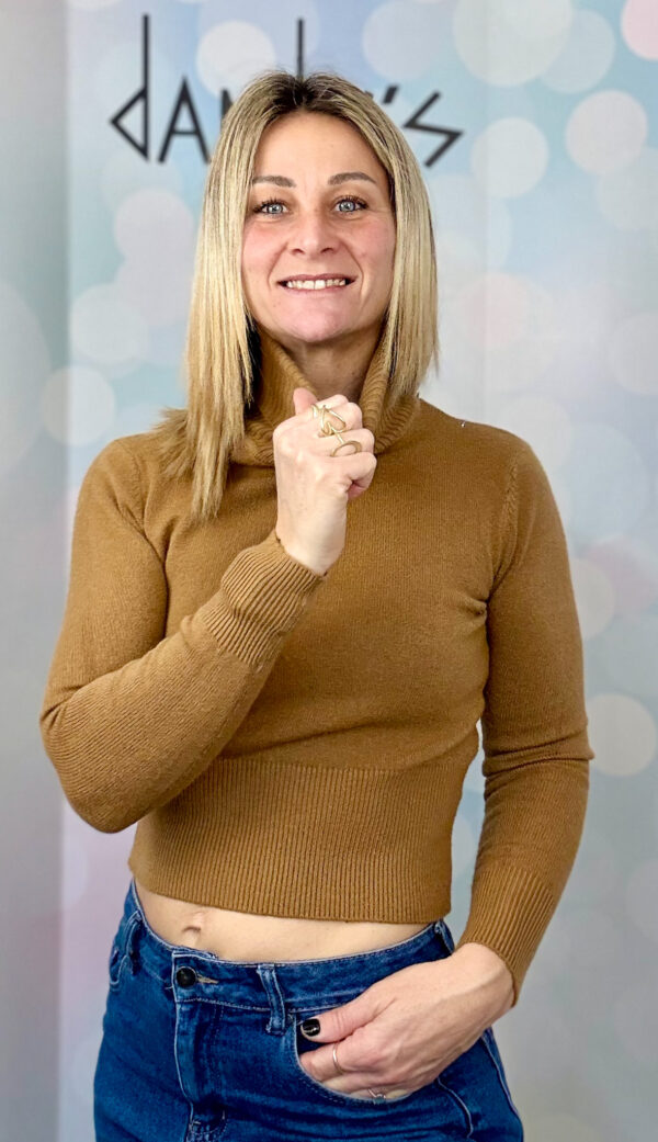 MAGLIONCINO CROP CON COLLO ALTO E FASCIONE IN VITA
