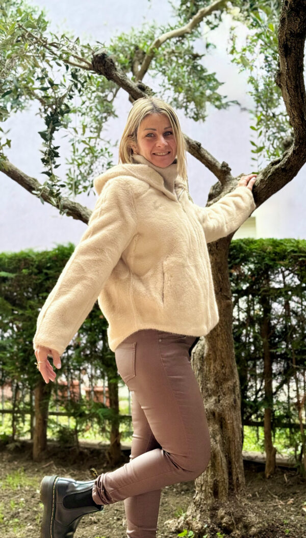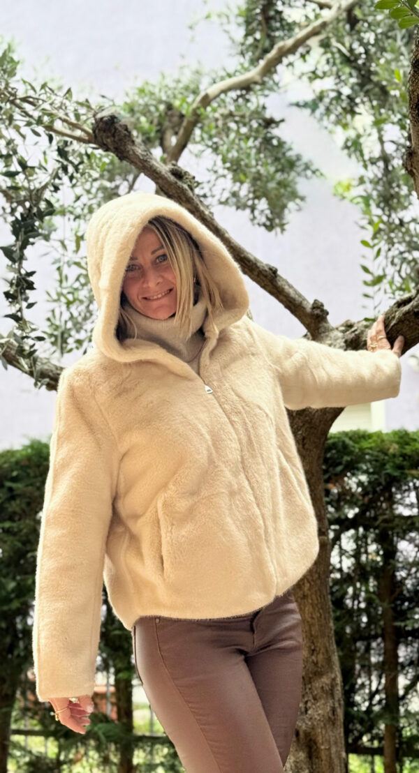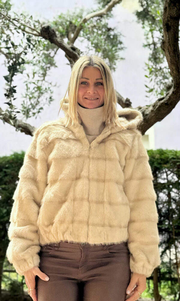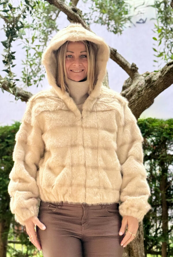 PELLICCIOTTO CORTO EFFETTO RIGATO E CAPPUCCIO